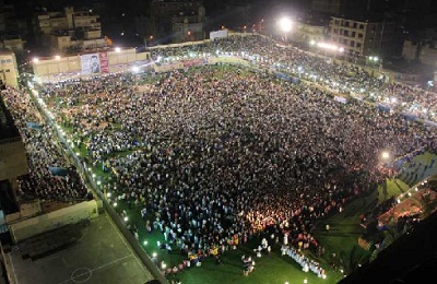 وأضاف أنه عندما يرى هذا الجمع الكبير من الجماهير المؤيدة له ولمشروعه الإسلامي يشعر بحمل المسئولية وهموم أمته التي تقع على عاتقه، ويحس بأنه موجَّه إلى شخصه الضعيف.