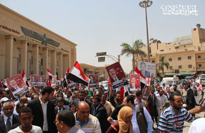د. مرسي محاطًا بمؤيديه في محطة الأقصر