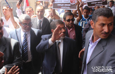 مرسي يحيي مستقبليه بالأقصر