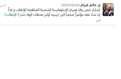 وأشار عزام في تغريدة عبر "تويتر" إلى أن الوفد سيعقد غدًا مؤتمرًا صحفيًّا في چنيف أولى محطات الوفد.