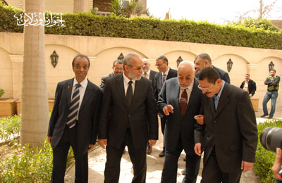 رافقه في الزيارة فضيلة الأستاذ محمد مهدي عاكف المرشد العام السابق للجماعة، والدكتور محمود غزلان المتحدث الإعلامي باسم الجماعة، والكاتب الصحفي محمد عبد القدوس مقرر لجنة الحريات بنقابة الصحفيين، ووليد شلبي المستشار الإعلامي لفضيلة المرشد العام.