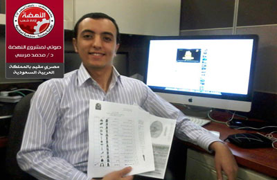 كثَّف أنصار د. محمد مرسي ومشروع النهضة بالمملكة العربية السعودية تواصلهم مع أشقاء الوطن؛ للتعريف بالمشروع الحضاري الذي يتبنَّاه حزب الحرية والعدالة لإعادة بناء مصر.