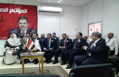 نظَّم حزب الحرية والعدالة بالتعاون مع حملة "مرسي رئيسًا" مؤتمرًا صحفيًّا عالميًّا ظهر اليوم؛ لشرح أهداف وأسس مشروع النهضة الذي يمثل البرنامج الانتخابي للدكتور محمد مرسي المرشح لرئاسة الجمهورية.