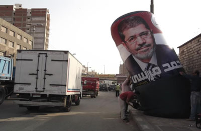 ونصب المشاركون بالونًا كبيرًا مطبوعًا عليه صورة د. مرسي، كما حملت زهراوات الإخوان الورود، ووزع الأشبال مطبوعات على الأهالي تحتوي على السيرة الذاتية للدكتور مرسي، وملخص لمشروع النهضة.