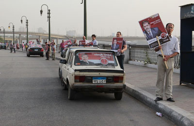 وقام شباب الحملة بتوزيع بطاقات تعريفية "بروشور" لدعم د. مرسي في الانتخابات، والأهداف التي يسعى لها على السيارات والأشخاص بطول كورنيش النيل، وامتداده للتبين ومايو وحتى أول طريق بني سويف.
