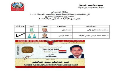 أما م. أحمد عبد الحليم المقيم بالبحرين فانتخب رمز الميزان لإعادة حقوق الشهداء والقصاص لمن أهرق دماءهم ظلمًا وجورًا.