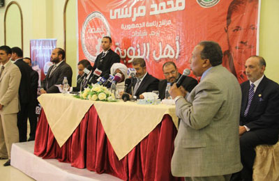 وأضاف م. محمد عوض البحر أحد أبناء النوبة أنه عندما تقدم د. مرسي بمشروع النهضة كان أهالي النوبة أول من قدموا المشروعات النهضوية والأفكار البنَّاءة، وعلى استعداد تامٍّ للتضحية والعمل علي نهضة الوطن، وخاصةً الجنوب، وفي مقدمته أرض النوبة.