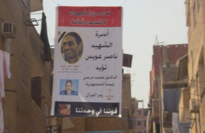 واحتوت الملصقات والجرافتي على كلمات، منها: "لا للفلول.. ثورة 25 يناير.. مصر أمانة.. لا لإضاعة دم الشهداء.. رابطة سائقي التاكسي الأبيض.. لا للفلول.. لما احتاج صوتي قال حيلغي أقساطي، أسرة الشهيد ناصر عويس تؤيد د. مرسي.. نداء من الشهداء لا تنسوا دماءنا".