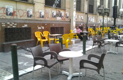 كراسي القهاوي تحجز أماكن وقوف الباعة بالـ"الشريفين" |