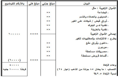 رابعاً : تحديد وعاء الزكاة وذلك بطرح (ثالثًا) من (ثانيًّا) ويكون ذلك صافى المال والذى تحسب عليه الزكاة
