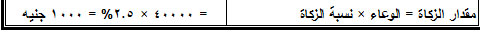 مقدار الزكاة = وعاء الزكاة × نسبة الزكاة