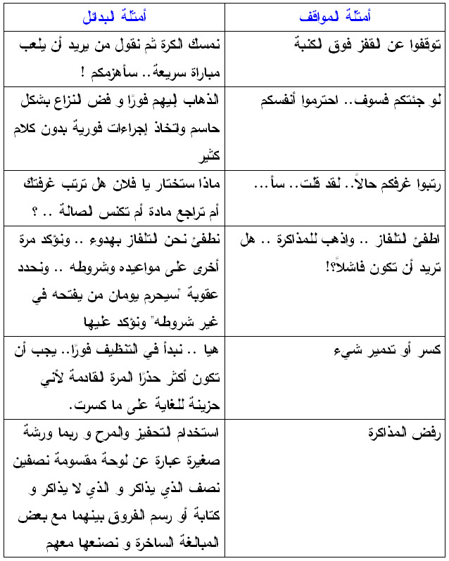 التهديد.. "سأبرحك ضربًا لو... !".. "جرب وسترى ماذا سأفعل بك!".. "لن تلعب بها ثانيةً إن وجدتها في غير مكانها".. "والله سأ..."... "توقفوا وإلا سآتي إليكم!"... "سألقيها من النافذة إن أمسكت بها مرةً أخرى".. "ركز في واجبك وإلا ضربتك".. "سأخبر أصدقائك عما فعلت!".. "سارفع الطعام إن لم تنهه حالاً!".. "ستذهب حافيًا غدًا للمدرسة إن لم تضع حذاءك في مكانه!".