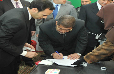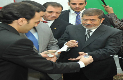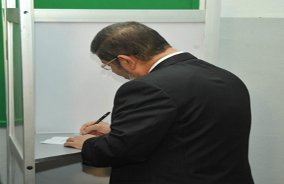 أدلى الرئيس محمد مرسي بصوته في المرحلة الأولى من الاستفتاء على مشروع الدستور صباح اليوم السبت بلجنة مدرسة مصر الجديدة الإعدادية بنين.