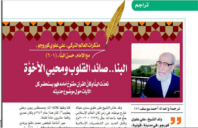 قال إمام المسجد للإمام البنَّا: "يا سيدي، في كل جمعة لا يتجاوز المصلون هنا صفين! وفي حضوركم امتلأ المسجد عن آخره وتكدس صحنه والشوارع المجاورة أيضًا.. وأنا أخطب الجمعة القادمة وصلاتها لك، وبعد الجمعة تداوم على درس التفسير كما أنت". ذهبنا أيضًا إلى الجمعة الثانية، وكان الإمام يرحمه الله تعالى يتحدث عن القرآن والقدر والموت.. وخلال حديثه عن الموت وهو على المنبر، جاءت جنازة إلى المسجد! كنت في حالة عجيبة وأنا ساكن مكاني لا أهمس. فقال دون أن ينتظر: "أيها الإخوة، هناك حقائق نعرفها لا تتغير أبدًا، وهي علم اليقين، يموت أحد الأقارب أو الجيران؛ فنرى عين اليقين! ويموت بعد ذلك آباؤنا وأمهاتنا وأطفالنا وزوجاتنا وأقرباؤنا؛ فنذوق حينئذ ألم الموت وحقيقته، ونفهم حق اليقين!".