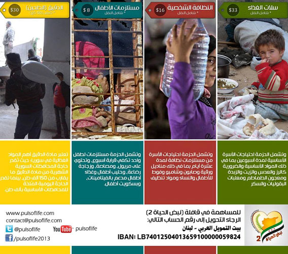 تنطلق القافلة العالمية لنصرة وإغاثة الشعب السوري "نبض الحياة 2" يوم 18 يونيو القادم من إسطنبول نحو الداخل السوري بمشاركة جهات إغاثية وإنسانية عربية وإقليمية وبتنسيق مع الاتحاد العالمي لعلماء المسلمين والمجلس الوطني السوري، ومجلس أمناء الثورة المصرية.