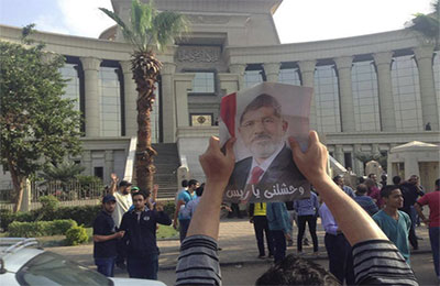 احتشد آلاف المتظاهرين أمام المحكمة الدستورية العليا صباح اليوم تنديدًا بمحاكمة الرئيس المختطف محمد مرسي غير الشرعية، مطالبين بإنهاء المهزلة الانقلابية التي يقودها قادة الانقلاب ومحاكتمهم بجرائم قتل المتظاهرين السلميين بمجازر عسكرية.
