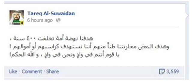 وأضاف السويدان في تدوينة له على موقع التواصل الاجتماعي "فيس بوك" أن هدف الكثير هو محاربتنا ظنًا منهم أننا نسعى إلى السلطة وخوفهم الشديد على فقدانهم أموالهم ومناصبهم .