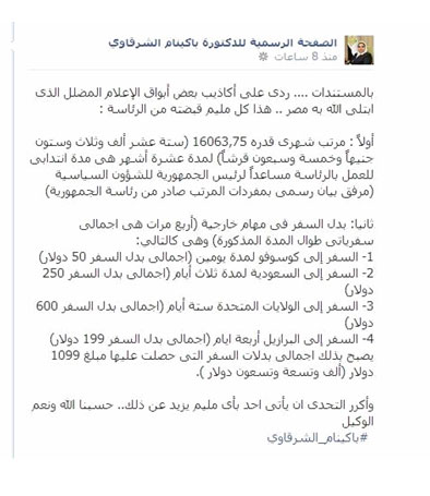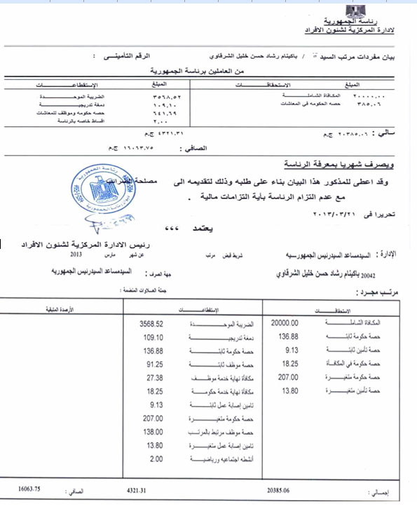 نشرت الدكتورة باكينام الشرقاوي، أستاذ العلوم السياسية بجامعة القاهرة ومساعد الرئيس الشرعي محمد مرسي، المستندات التي تتعلق بما حصلت عليه من راتب خلال عملها مستشارة للرئيس محمد مرسي.