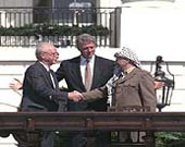 - نشأ الكيان الفلسطيني من خلال مفاوضات باشرتها إحدى مؤسسات الشعب الفلسطيني، وهي منظمة التحرير الفلسطينية، والتي تشكِّل حركة فتح الحركة الأكثر تمثيلاً فيها، ويوجد بعض الحركات الشعبية الفلسطينية الأخرى داخل إطار المنظمة، والبعض الآخر غير مُمَثَّل في المنظمة، وبالأخص حركتا المقاومة الإسلامية حماس والجهاد الإسلامي، وهذه المفاوضات هي مفاوضات أوسلو التي أثمرت عن سلسلة من اتفاقيات التسوية بين الطرفين الفلسطيني والصهيوني في التسعينيات الماضية، مثل اتفاق إعلان المبادئ، واتفاق القاهرة "غزة- أريحا أولاً".