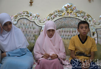 التقينا بأفراد الأسرة، والتي تتكون من الأم والابنة الكبرى أسماء (طالبة بالفرقة الأولى كلية الطب) وسلسبيل (الصف الأول الثانوي) وعبد الله (الصف السادس الابتدائي) وإسراء (الصف الرابع الابتدائي 9 سنوات) ومريم (رياض أطفال)؛ لنتعرف على هذه المأساة.