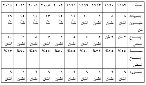 2- عام 2002 عندما وصل الإنتاج إلى 50% من الاحتياجات، كانت مصر تستورد 6 ملايين طن/ السنة.