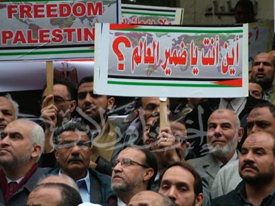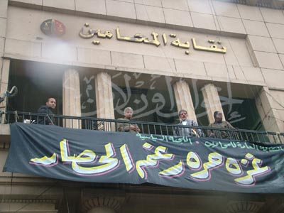 المحامون يرفعون شعارات تندد بتجويع الشعب الفلسطيني
