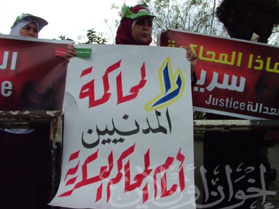 وقفة أهالي المحالين للمحاكمة العسكرية أمام مجلس المرأة