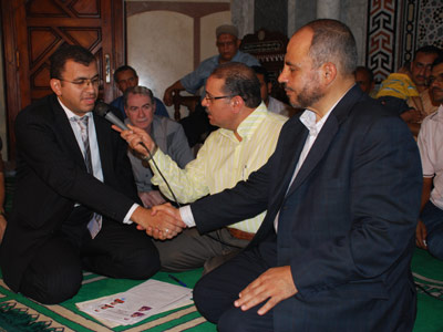 ياسر عبده والعريس خلال عقد الزواج