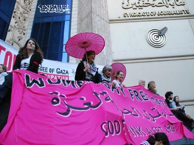 وقفة لنشطاء مصريين وأجانب أمام نقابة الصحفيين لدعم غزة