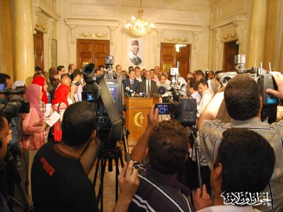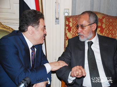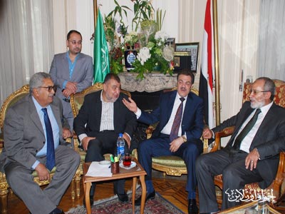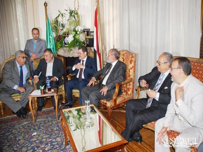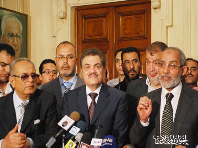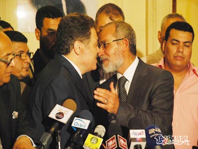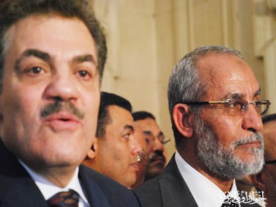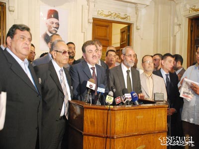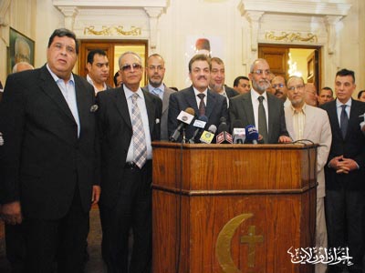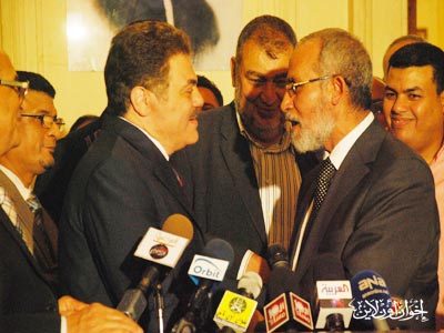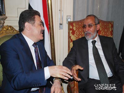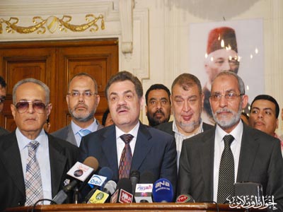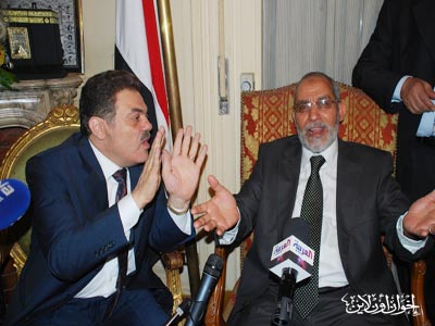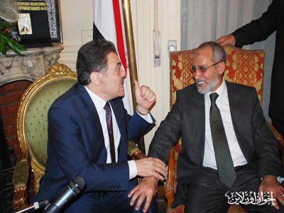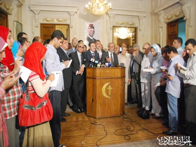المرشد العام خلال المؤتمر الصحفي بعد زيارته لرئيس حزب الوفد