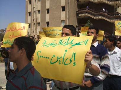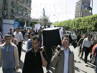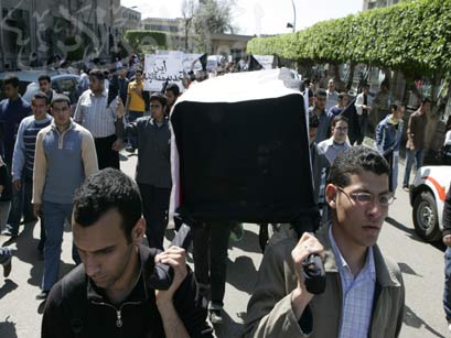 طلاب جامعة القاهرة يحملون نعش الديمقراطية