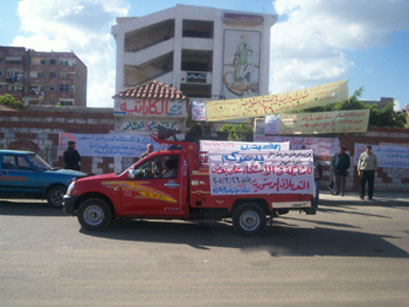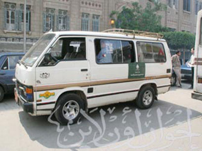 ميكروباص تابع للحزب الوطني ينقل المواطنين أمام محطة سكة حديد مصر