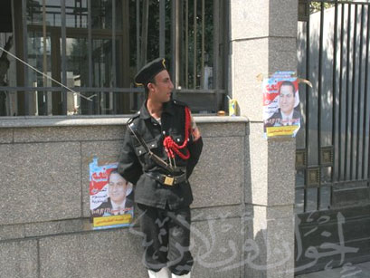 مجند أمن أمام إحدى اللجان الخاوية من الناخبين